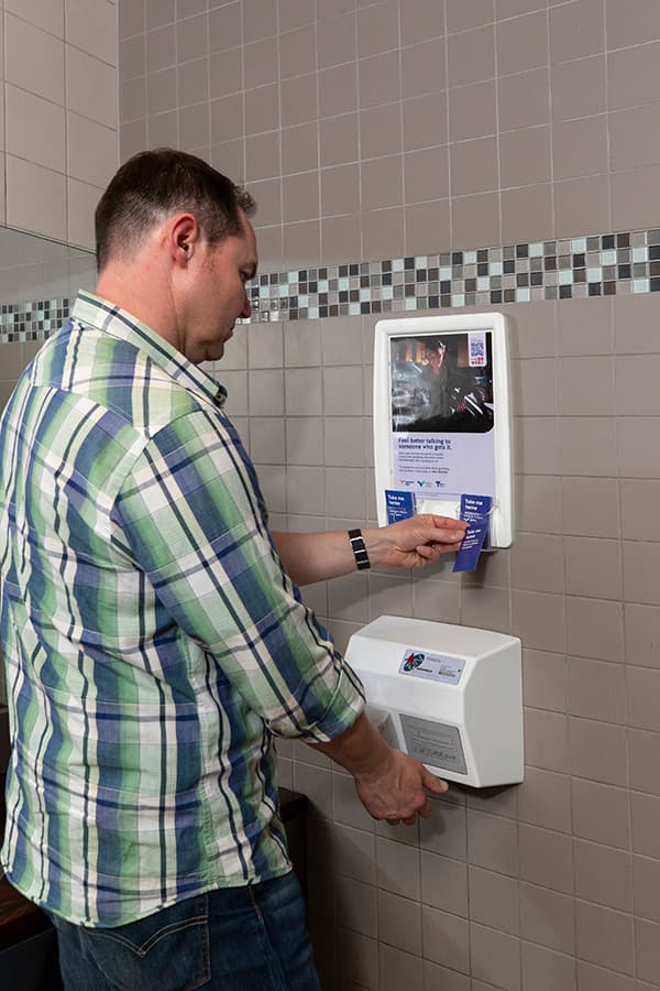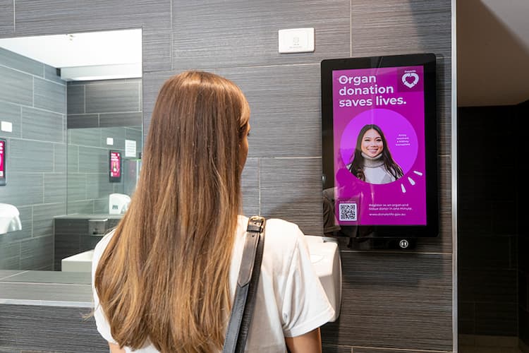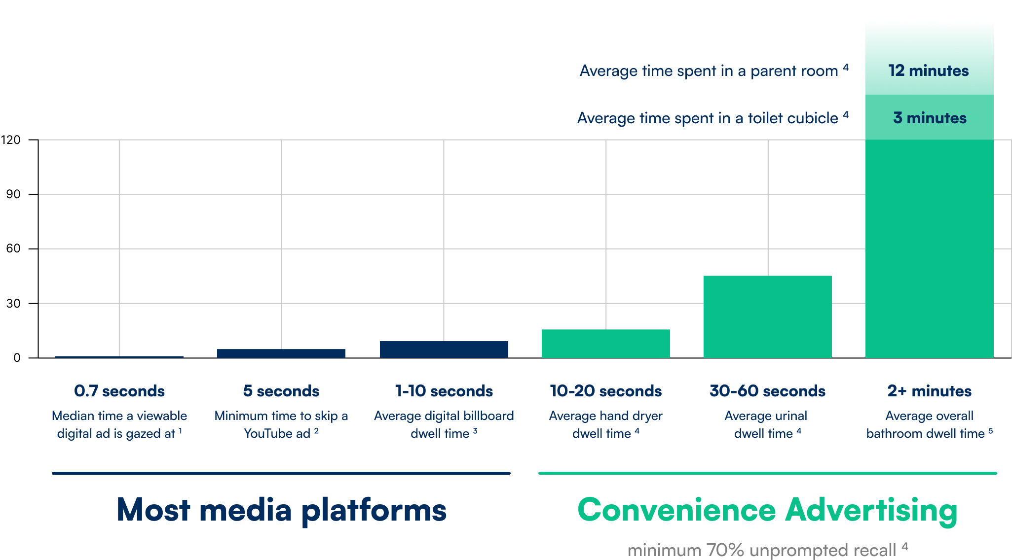 With an average of three minutes* spent in a cubicle every time you use a public bathroom, complex messages can not only be easily conveyed and understood, they can also be acted upon in a private setting with the scan of a QR code.